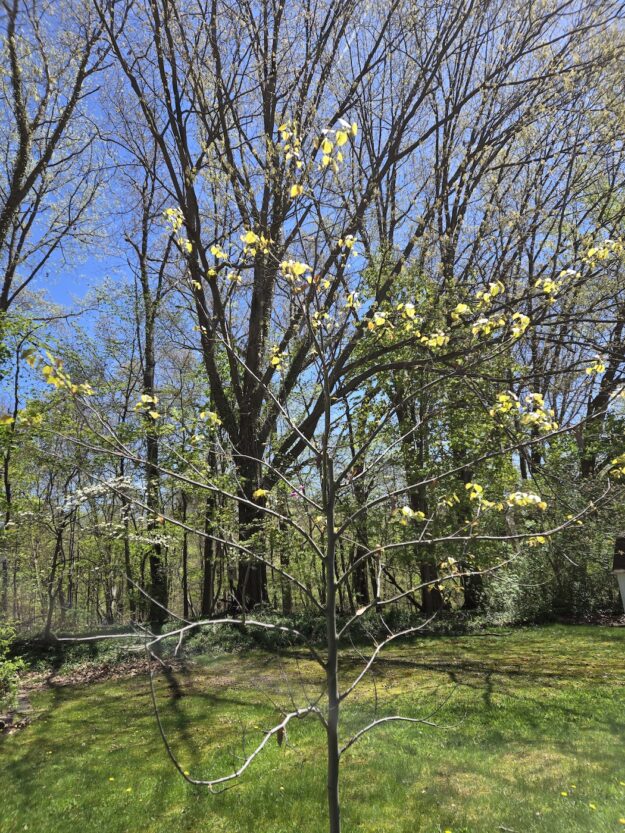 This year, my larger redbud tree has only a few blooms on it and seemingly has gone straight to leaf. Last year, it fully bloomed and looked great. This year, it went to leaf right away while almost all the redbuds I’ve seen have bloomed nicely. It does seem to be growing faster this year than last: Must be focusing its energy on growth. So, hopefully next year it’ll be in full bloom again.