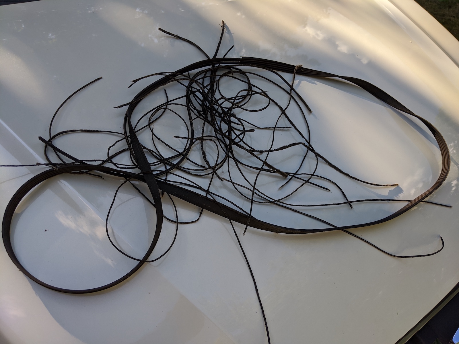 Today brought another episode in my recent spate of car troubles: The serpentine belt shredded itself and then popped off while I was up in Cleveland. I was luckily able to fix it, but it made for a long, hot trip.