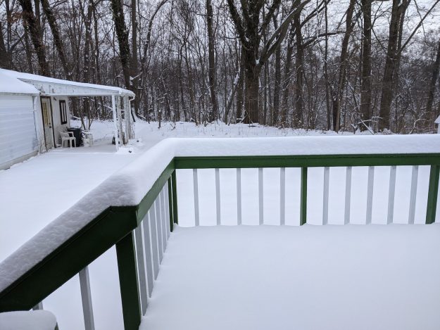 Dinner was scheduled at my parents for 5. I went to leave around the time I would’ve if the road conditions were just fine. My car had other plans: The battery didn’t have enough in it to get the engine going in this cold weather, and my Halo car jumping device, which has been on the fritz, didn’t want to do anything at all (lights and USB ports weren’t working either). I knew my seven year old battery was on its way out when it failed this summer, and it had struggled a bit in recent less-cold days. Anyway, I don’t know most of my neighbors well enough to ask for help, so my brother altered course and came and picked me up. Later tonight I borrowed my Dad’s working Halo, and my car started right up. I went for a drive to ensure it got charged as much as it could. I will need to go battery shopping tomorrow and get a new starter device in the near future.