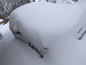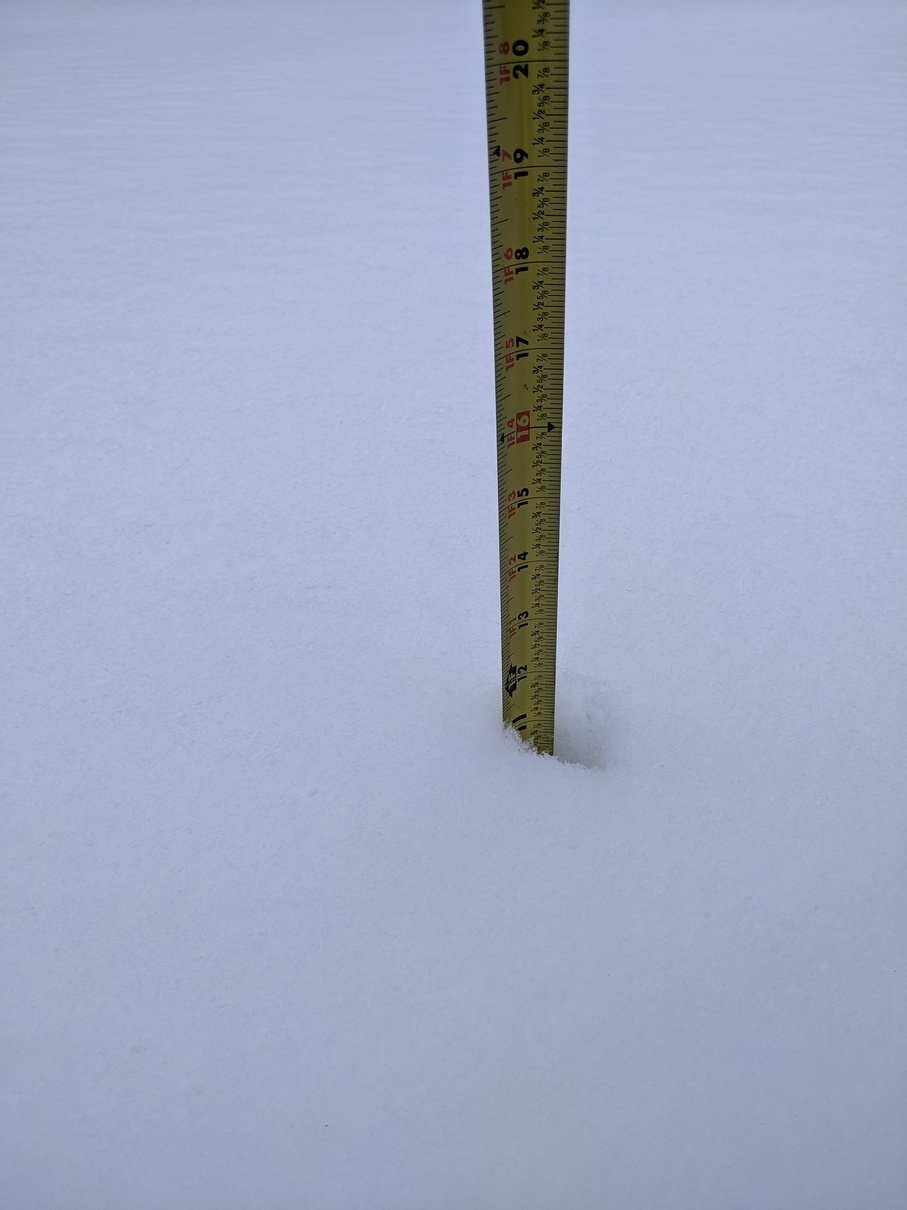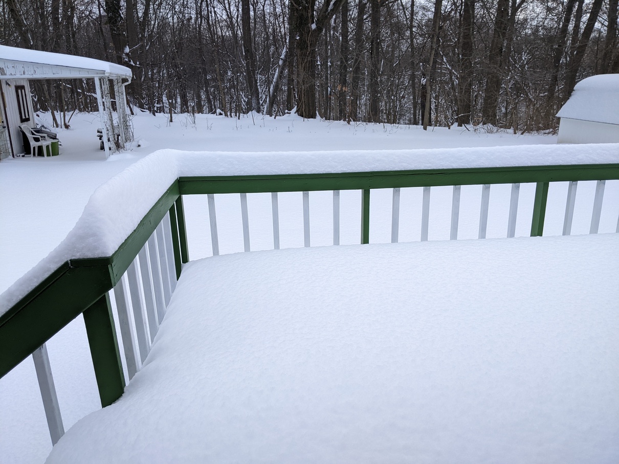 We got a lot of snow overnight. I measured it to be like 12 inches. I had to shovel my way out off the deck.