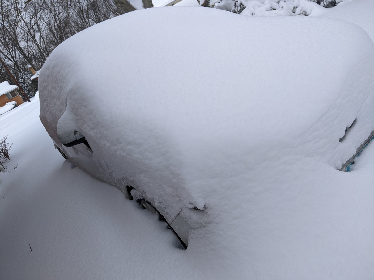 This is the most snow we’ve gotten in a while, at least all at once. My one neighbor said it hadn’t been that bad since the 70s. I do remember one bad one while living here (last five years) where there were lots of complaints about how long it took for the plows to come all over Akron. I also remember some further back that were bad, though I was living a bit more North at the time. One particularly infamous one involved a lot of snow while driving my parents’ to the airport, with the car struggling and also the airplane struggling with the snow. And there was one where the power went out in much of the Eastern United States. I don’t remember quite how much snow fell those times, but it seemed like a lot.