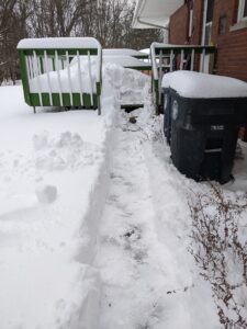 The plow pushed snow in front of my drive, which was deeper and heavier than everywhere else. That took a while. The plow put a huge pile of snow in front of my neighbors drive, like five or six feet high. He’s older and has two knees replaced, so another neighbor went over to help him shovel. I went over after I was done with mine, though he had gotten through most of the big pile already. I helped finish the pile and push through the length of the drive. It went quick with three of us.