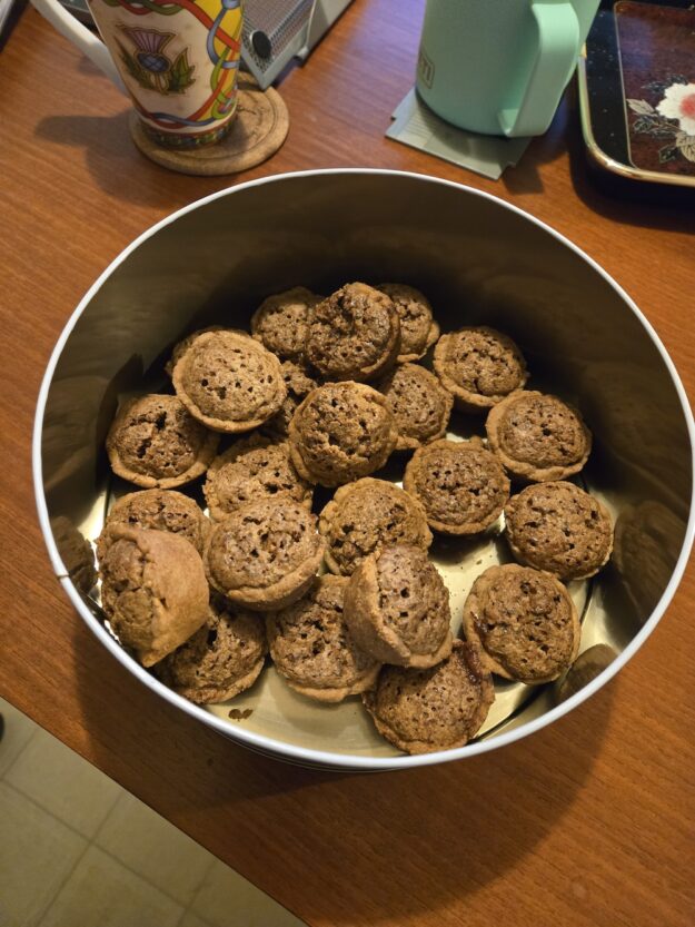 I’m late to posting this, but I hope y’all had a merry Christmas and new year. At least I get to include the lunar new year in that too. We just had the small four person get togethers that we’ve been doing for these since Covid. We did a pierogi dinner with kraut for Christmas eve and Turkey and the like on Christmas day. Dinners were delicious. I made my pecan tassies for both Christmas and new years and they came out well. Gifts I got include a weather station, a house plant, a vest, some cereal, and some gift cards.